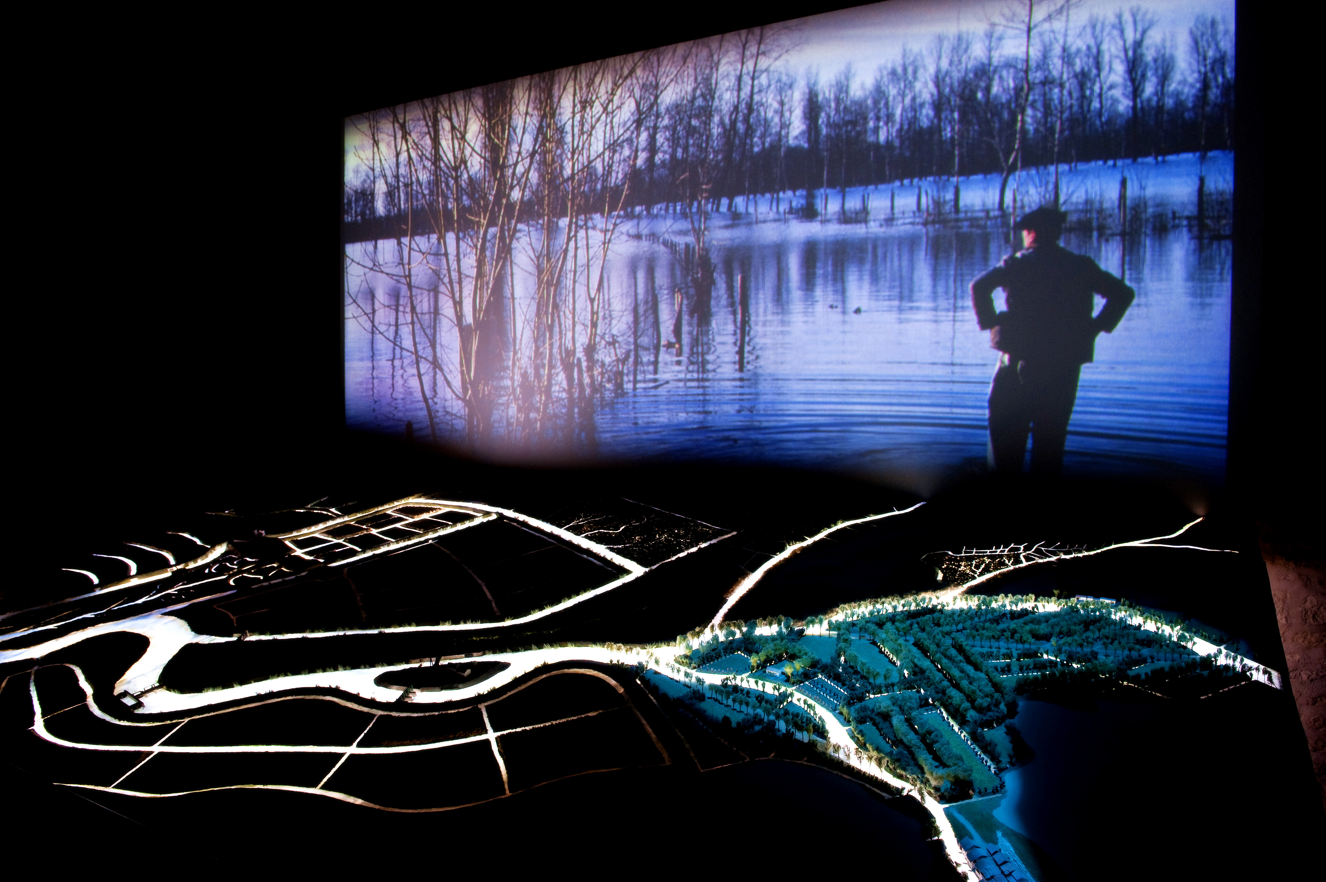 Images d’archives, gravures et films contemporains sont projetés, tandis qu’une maquette de 15 m² du Marais poitevin illumine les aménagements successifs : du travail des moines pour assécher le marais, aux ingénieurs hollandais qui ont poursuivi cette tâche, jusqu’aux travaux de Napoléon Ier pour aménager le marais mouillé.
